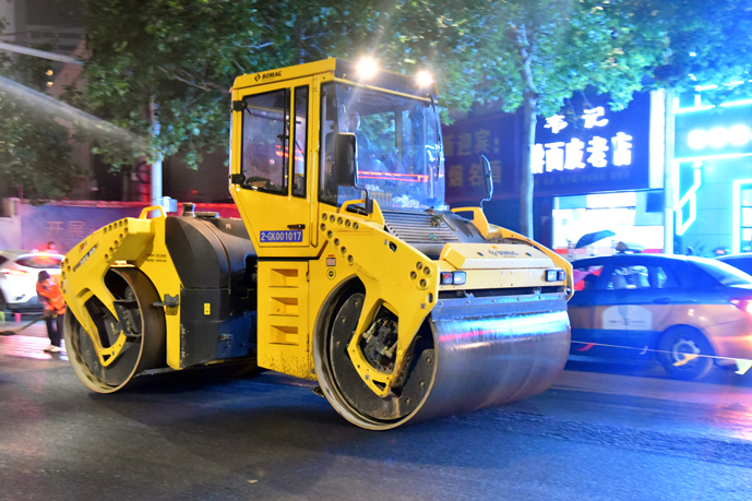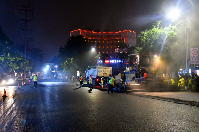 為加快施工進(jìn)度,最大程度地減少對(duì)周邊居民的影響,自進(jìn)駐施工以來(lái),項(xiàng)目部克服交通壓力大,天氣炎熱,沿線車輛多等困難,投入施工技術(shù)人員和交通協(xié)管人員20余人,銑刨機(jī)、挖掘機(jī)、攤鋪機(jī)、壓路機(jī)、各類運(yùn)輸車輛等機(jī)械設(shè)備30余臺(tái),采取半幅施工的方式,24小時(shí)晝夜奮戰(zhàn)。6月16日晚,為保證最后階段的瀝青混凝土攤鋪施工,公司從各部門抽調(diào)人員協(xié)助項(xiàng)目現(xiàn)場(chǎng)的交通管理,全力保障倉(cāng)庫(kù)路提前完工通車。