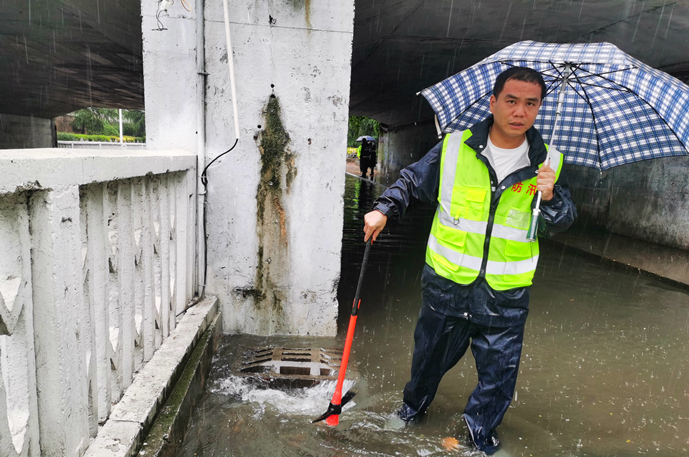 防汛應(yīng)急抽升隊(duì)對道路積水緊急排水,最大限度保證市民正常通行;巡視分隊(duì)對路面井蓋進(jìn)行不間斷巡查,及時(shí)消除安全隱患。